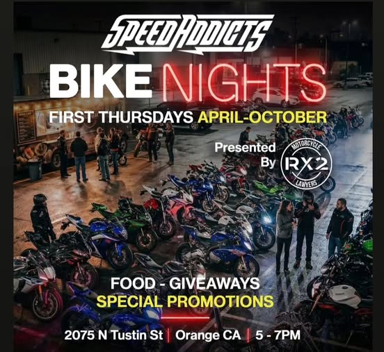 Join us the first Thursday of every month for a night built for riders. Whether you're rolling in on a sport bike, cruiser, ADV bike, or just stopping by to hang out, this is your spot. 2075 N Tustin St Orange, CA 92865