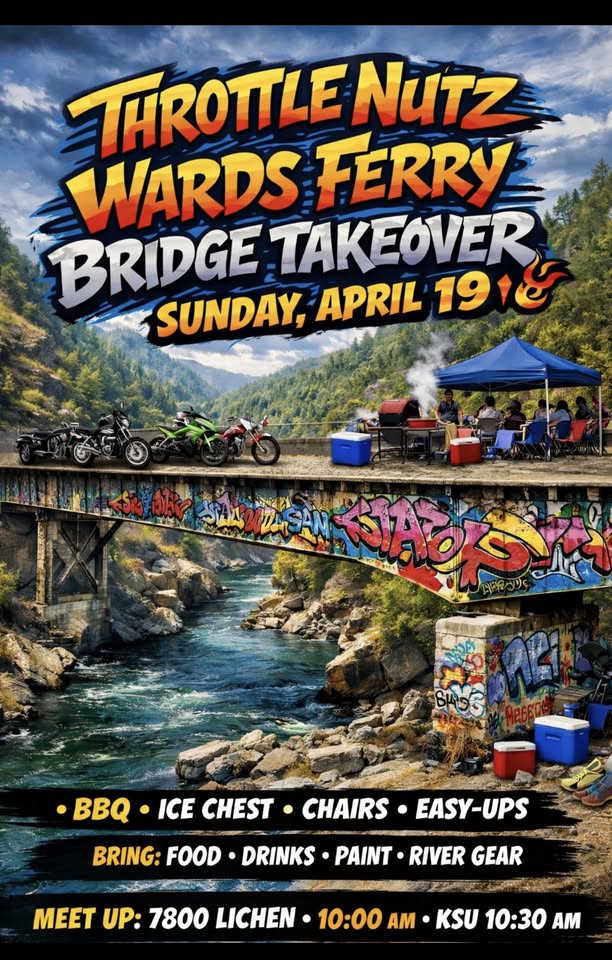 Wards Ferry Bridge Takeover & BBQ π¨π₯ π April 19th π Meet-up: 7800 Lichen β° Meet at 10:00 AM | KSU 10:30 AM Weβre riding out for a Bridge Takeover β laying down fresh paint and enjoying a solid day with the crew. π Working on a chase car with: π₯ BBQ π§ Ice chest πͺ Chairs βΊ Easy-Ups π What to bring: β’ Food for the BBQ β’ Drinks π» β’ Aerosol cans / paint for your art π¨ β’ River shoes & swim gear π©΄π (thereβs water if you want to cool off) Letβs keep it fun, creative, and respectful. β οΈ *Ride safe & be responsible. Everyone is welcome
