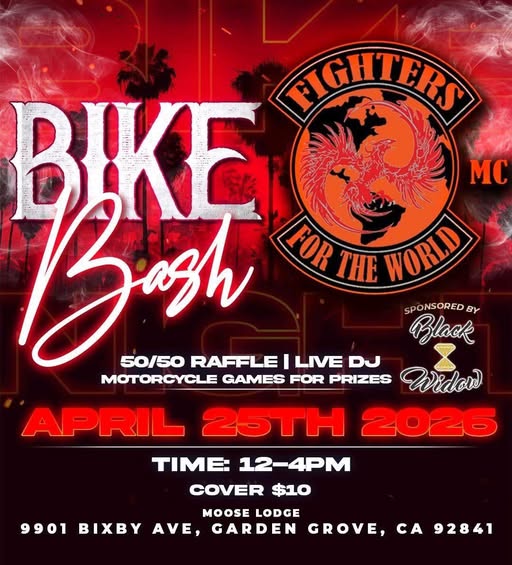 50/50 Raffle | Live DJ Motorcycle Games for Prizes April 25th 12PM to 4PM Cover $10 Moose Lodge 9901 Bixby Ave Garden Grove, CA 92841