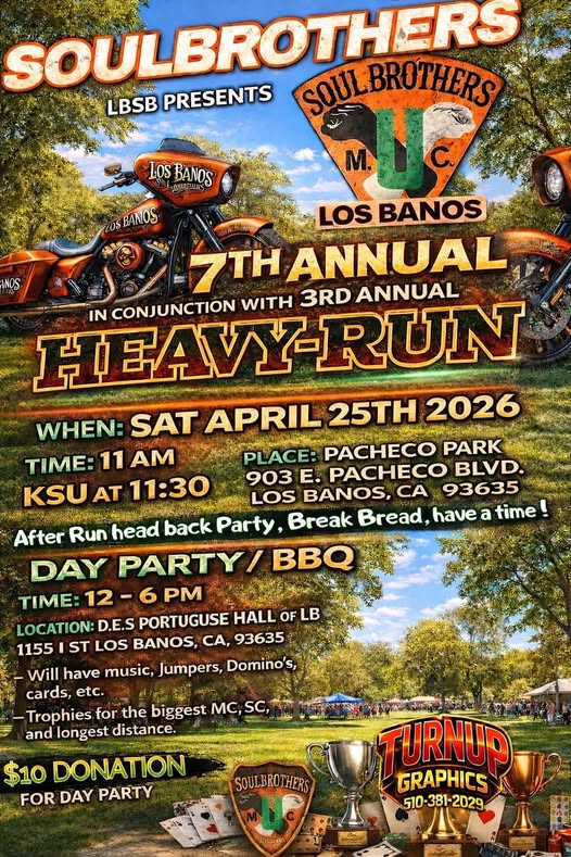 Pacheco Park 903 E Pacheco Blvd Los Banos, CA 93635 After the ride Day Party/BBQ D.E.S. Portuguse Hall 1155 I St Los Banos, CA 93635 Music, jumpers, Domin's, Cards Trophies $10 Donation